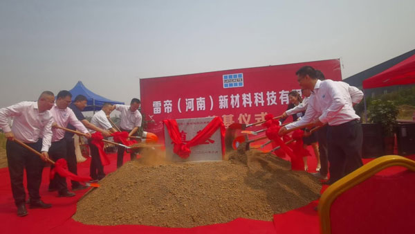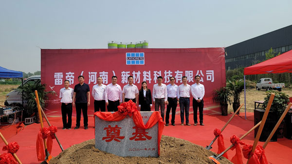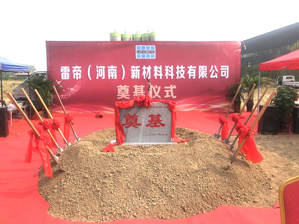 2021年6月11日,備受矚目的雷帝河南新工廠奠基儀式在河南隆重舉行。本次雷帝再次啟程成立雷帝(河南)新材料科技有限公司,總占地面積6000平方,初期構(gòu)建干粉生產(chǎn)線2條,規(guī)劃干粉年產(chǎn)能15萬(wàn)噸。