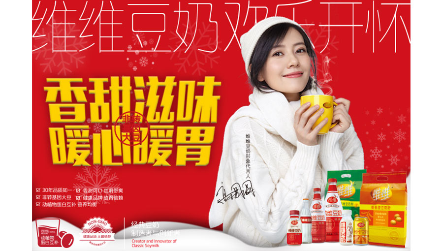 維維品牌價值評估過百億。維維出品,被消費者稱譽(yù)“健康品牌,值得信賴”。