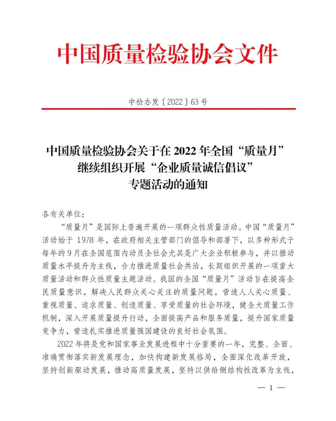 持續(xù)堅(jiān)守,久久為功。45年來,全國“質(zhì)量月”活動(dòng)參與者上億人次,中國質(zhì)量工作也歷經(jīng)了“質(zhì)量振興”“質(zhì)量發(fā)展”及至當(dāng)下“質(zhì)量強(qiáng)國”的非凡歷程。中國質(zhì)量檢驗(yàn)協(xié)會(huì)作為始于1996年就參與全國“質(zhì)量月”的親歷者,我們必將繼續(xù)努力舉辦好全國“質(zhì)量月”企業(yè)質(zhì)量誠信倡議專題活動(dòng),為助力擴(kuò)大全國“質(zhì)量月”活動(dòng)在廣大企業(yè)中的影響力作出不可或缺的積極努力。