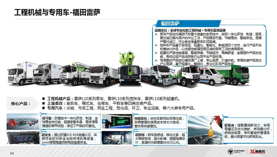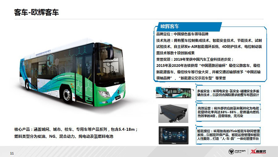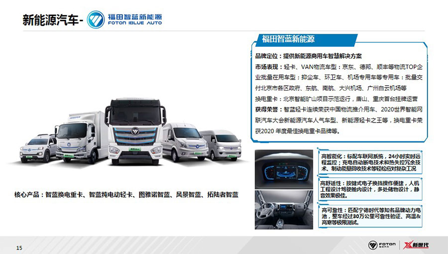 福田汽車(chē)已形成集整車(chē)制造、核心零部件、汽車(chē)金融、車(chē)聯(lián)網(wǎng)、福田電商、二手車(chē)為一體的汽車(chē)生態(tài)體系,涵蓋整車(chē)、零部件、汽車(chē)后市場(chǎng)三大業(yè)務(wù)版塊。整車(chē)業(yè)務(wù)覆蓋卡車(chē)、大中客車(chē)、輕型客車(chē)、皮卡、工程機(jī)械與環(huán)境裝備、新能源汽車(chē)等6大業(yè)務(wù)單元及18個(gè)產(chǎn)品品牌。在超級(jí)動(dòng)力鏈層面,福田汽車(chē)與康明斯、采埃孚等全球合作伙伴,全球首創(chuàng)動(dòng)力鏈集成創(chuàng)新模式,成立福田汽車(chē)動(dòng)力集成創(chuàng)新中心PDIC,定制打造福田汽車(chē)第一條動(dòng)力鏈產(chǎn)品——“X超級(jí)動(dòng)力鏈”,引領(lǐng)中國(guó)商用車(chē)動(dòng)力系統(tǒng)變革。后市場(chǎng)業(yè)務(wù)著力服務(wù)生態(tài)建設(shè),覆蓋用戶從購(gòu)車(chē)到用車(chē)的全生命周期,積極拓展金融、二手車(chē)業(yè)務(wù),將智能科技融入服務(wù)體系,2020年,發(fā)布智能互聯(lián)業(yè)務(wù)品牌——會(huì)享福,著力推進(jìn)商用車(chē)后市場(chǎng)服務(wù)生態(tài)建設(shè)。