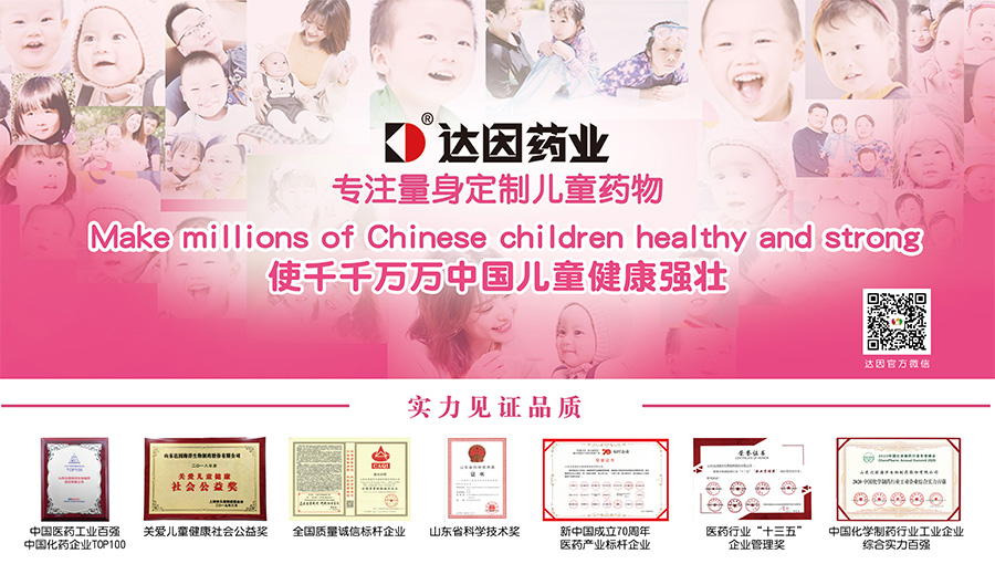 山東達(dá)因海洋生物制藥股份有限公司(簡稱達(dá)因藥業(yè)),是中國醫(yī)藥企業(yè)管理協(xié)會(huì)兒童用藥專業(yè)委員會(huì)主任委員單位,以“使千千萬萬中國兒童健康強(qiáng)壯”為使命,專注于兒童健康領(lǐng)域產(chǎn)品研發(fā)、生產(chǎn)和市場營銷,以專業(yè)和責(zé)任捍衛(wèi)兒童用藥安全,在兒科專業(yè)用藥領(lǐng)域取得了良好的口碑和覆蓋率,樹立了中國兒童用藥的旗幟地位。達(dá)因藥業(yè)產(chǎn)品線涉及兒童藥品、兒童保健食品和兒童營養(yǎng)食品、兒童健康用品等領(lǐng)域,形成了以“兒童保健和治療”領(lǐng)域?yàn)楹诵牡膬和】诞a(chǎn)業(yè)布局。