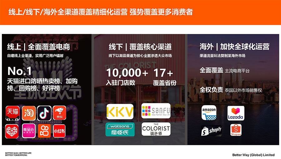 旗下核心打造的泰國(guó)美妝品牌Mistine蜜絲婷,由阿門貼博士于1988年創(chuàng)立,深耕彩妝護(hù)膚領(lǐng)域35年,專業(yè)底蘊(yùn)深厚。自2016年進(jìn)入中國(guó)市場(chǎng)以來,通過建立全新品牌形象,不斷豐富產(chǎn)品類目、深耕渠道拓展,以精細(xì)化、獨(dú)特化、差異化的優(yōu)勢(shì)類目,精準(zhǔn)定位核心消費(fèi)群體,為中國(guó)市場(chǎng)帶來了小黃帽面部防曬、小藍(lán)帽身體防曬、藍(lán)盾金盾粉底液等諸多爆品,發(fā)展勢(shì)頭迅猛。從2017年開始,Mistine蜜絲婷已連續(xù)5年穩(wěn)坐天貓國(guó)際美妝Top3品牌,也是天貓進(jìn)口防曬熱賣榜、加購(gòu)榜、回購(gòu)榜、好評(píng)榜TOP1,明星單品小黃帽全渠道年度銷量破千萬瓶,天貓每銷售8支防曬霜,就有1支來自Mistine蜜絲婷。
