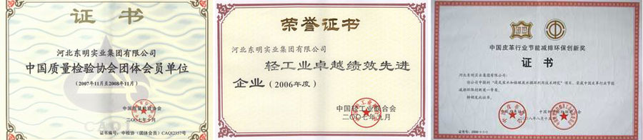 河北東明實業(yè)集團有限公司創(chuàng)建于1996年,集團下屬河北東明皮革有限公司、河北東明制衣有限公司、河北東明牛皮制革有限公司、東明金興制衣有限公司、東明酒店、東明商廈、河北東明中硅科技有限公司、辛集市東明房地產(chǎn)開發(fā)有限公司八個子公司。集團是按高標準、高起點、嚴要求興建的辛集地方特色產(chǎn)業(yè),經(jīng)過幾年的不懈努力,已發(fā)展成擁有職工3000人,制革能力和產(chǎn)量在全國制革業(yè)中居前位,其中綿羊皮服裝革產(chǎn)銷量列第一位的中型民營企業(yè)。獲得國家星火計劃獎、國家農(nóng)副產(chǎn)品加工龍頭企業(yè)、國家優(yōu)秀鄉(xiāng)鎮(zhèn)企業(yè)、全國外商投資先進企業(yè)、全國雙愛雙評先進企業(yè);獲河北省著名商標、河北省名牌、河北省質(zhì)量效益型先進企業(yè)、河北省重合同守信用單位、河北省百強企業(yè)和石家莊市50強企業(yè)等80多個國家級獎項和榮譽稱號。集團在皮革行業(yè)樹立的良好聲譽使東明成為高品質(zhì)的代名詞,可信賴的經(jīng)營作風更獲得世界各地客戶贊賞!集團近年來不斷加大技改投入,先后投入3個億人民幣進行技術(shù)改造,投入2000萬進行環(huán)保污水處理,經(jīng)過不斷的創(chuàng)新改造,在環(huán)境保護和環(huán)境治理上取得了可喜成就。其中,無灰浸鞣、廢灰夜循環(huán)利用、廢鉻液循環(huán)利用工藝技術(shù),獲河北省科技廳科技成果獎,并在全國皮革行業(yè)推廣,取得豐厚的企業(yè)經(jīng)濟效益和社會效益。2009年獲全國輕工行業(yè)“節(jié)能減排環(huán)保創(chuàng)新獎”。獲得全國“五一勞動獎狀”。河北東明實業(yè)集團有限公司產(chǎn)品質(zhì)量獲得國家真皮生態(tài)皮革稱號、辛集市利稅大戶。近年來向社會捐資500萬用于公益事業(yè)?,F(xiàn)在集團勞動關(guān)系和諧,曾被國家評為“雙評雙愛”先進單位。多次被省評為“重合同守信用”企業(yè),客戶對產(chǎn)品質(zhì)量滿意率一直在99%以上,客戶對產(chǎn)品售后服務(wù)滿意度在99%以上。集團成立以來致力于生產(chǎn)高質(zhì)量的產(chǎn)品,“以誠信為根本,視質(zhì)量為生命”是東明人一貫遵循的準則,也正是對這一目標的不懈追求使公司不斷的發(fā)展壯大。集團生產(chǎn)的綿羊服裝革,以其色澤均勻、手感柔軟著稱,不僅在國內(nèi)有很高的聲譽,還贏得了國外許多廠家的青睞,已打入美國、加拿大、韓國、俄羅斯、香港等國外市場。