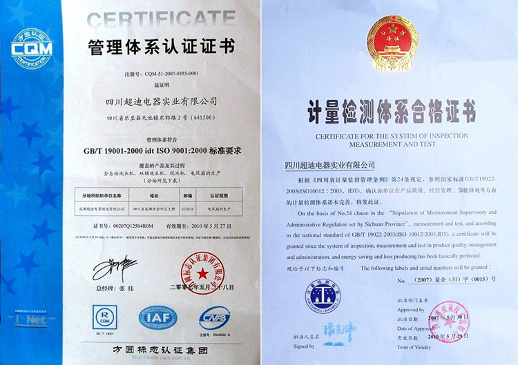 四川超迪電器實業(yè)有限公司是一家集研發(fā)、制造、注塑、總裝、營銷、售后為一體的跨地域性的集團公司。公司通過十幾年的奮斗,現(xiàn)已建立、健全了“西點軍校”模式的企業(yè)管理體系。在產(chǎn)品標準體系方面,先后通過了ISO9001質(zhì)量管理體系認證、ISO14000環(huán)境體系認證、OHSAS18000職業(yè)安全健康管理體系認證,是國際標準采樣單位,是采用國際標準認可合格企業(yè),產(chǎn)品全部通過了中國質(zhì)量認證中心認證,取得了國家強制認證3C證書。在噪聲能效標準上,通過了質(zhì)量監(jiān)督檢驗站檢測。在榮譽方面,公司生產(chǎn)的洗衣機獲得了“國家免檢產(chǎn)品”證書,連續(xù)三屆獲得“四川名牌產(chǎn)品”證書,獲得了“四川省著名商標”證書等各項榮譽。在產(chǎn)品保障方面,辦理由中國人民保險公司對產(chǎn)品的全程保險。