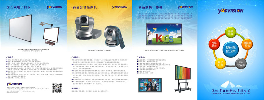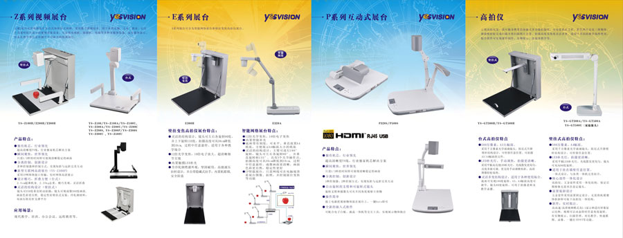 主要產(chǎn)品:云視牌高清實(shí)物展臺、高拍儀、交互式電子白板、智能終端一體機(jī)、高清攝像機(jī)、音箱
