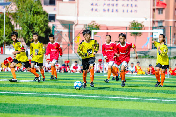 活動(dòng)現(xiàn)場(chǎng)還舉辦了在安踏運(yùn)動(dòng)場(chǎng)的第一場(chǎng)足球賽。據(jù)了解,楓香九校是足球特色校,但學(xué)校一直缺少專業(yè)足球場(chǎng),此次安踏足球運(yùn)動(dòng)場(chǎng)的捐建將改善學(xué)校的運(yùn)動(dòng)環(huán)境,推動(dòng)當(dāng)?shù)刈闱蜻\(yùn)動(dòng)發(fā)展。此外,在今年8月開(kāi)展的安踏體育課教師培訓(xùn)貴州站中,石阡縣派出了33名鄉(xiāng)村體育教師參與培訓(xùn)。安踏集團(tuán)攜手合作伙伴和兒童青少年體育專家共同開(kāi)發(fā)安踏體育課,課程旨在通過(guò)培訓(xùn)一線體育教師,提升專業(yè)體育教育水平,激發(fā)體育教師的教學(xué)熱情,從而達(dá)到全方位推動(dòng)深化體教融合,改善體育教育質(zhì)量,促進(jìn)青少年全面健康成長(zhǎng)的目的。