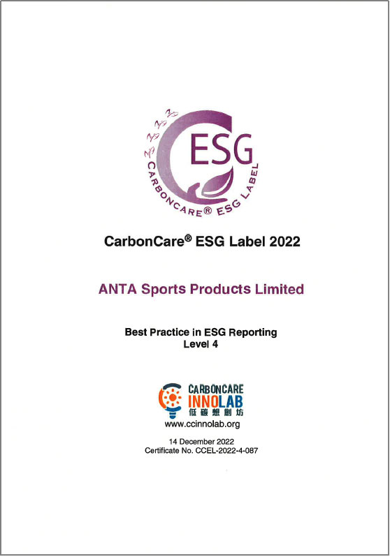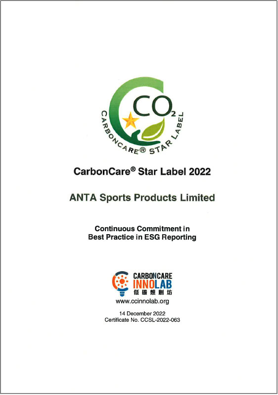 此外,安踏集團(tuán)于低碳想創(chuàng)坊(Carbon Care Innovation Lab)中獲頒「ESG報(bào)告最佳匯報(bào)實(shí)踐第四級」,較去年提升兩級,反映集團(tuán)ESG報(bào)告表現(xiàn)優(yōu)異,在公司董事局的問責(zé)度、實(shí)質(zhì)性評估、社會關(guān)鍵績效指標(biāo)的披露,以及企業(yè)氣候行動的努力亦得到外界的認(rèn)可。安踏集團(tuán)曾于過往連續(xù)三年成功取得「低碳關(guān)懷標(biāo)簽」,因此本年度獲額外頒發(fā)「低碳關(guān)懷星級標(biāo)簽」,以表彰過往在ESG方面的成果。