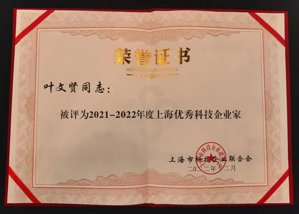 12月8日,上??沦惖滤辜用朗图瘓F(tuán)有限公司董事長葉文賢被授予“上海市優(yōu)秀科技企業(yè)家”稱號(hào)。這是在全國疫情防控新形勢(shì)下,對(duì)葉文賢同志直面經(jīng)濟(jì)大環(huán)境的挑戰(zhàn),堅(jiān)持科技創(chuàng)新、堅(jiān)持實(shí)業(yè)興企、堅(jiān)持多品牌運(yùn)作取得顯著成效的肯定。