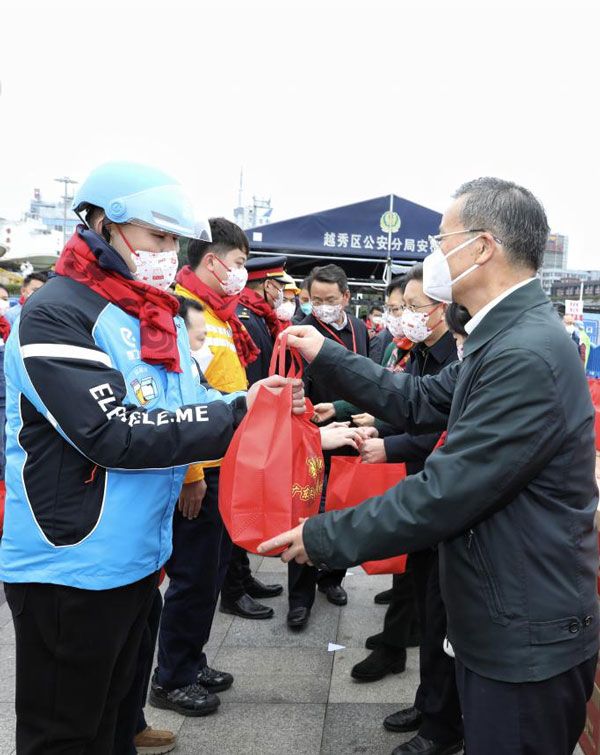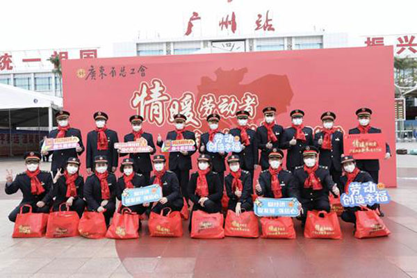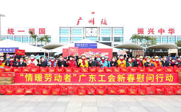 省人大常委會(huì)黨組成員、省總工會(huì)主席呂業(yè)升出席慰問活動(dòng)并向廣大勞動(dòng)者致以親切問候和新春祝福。省總工會(huì)黨組書記、常務(wù)副主席陳偉東,省總工會(huì)黨組成員、副主席杜玲,省總工會(huì)副主席(兼職)、廣州市人大常委會(huì)副主任、市總工會(huì)黨組書記、主席唐航浩等代表廣東工會(huì)向慰問現(xiàn)場的網(wǎng)約配送員、環(huán)衛(wèi)工人、建筑工人以及保障春運(yùn)的保安員、醫(yī)務(wù)人員、公安干警、鐵路客運(yùn)服務(wù)人員等職工代表送上新春慰問大禮包。廣州市總工會(huì)及越秀區(qū)總工會(huì)相關(guān)領(lǐng)導(dǎo)參加了慰問活動(dòng)。