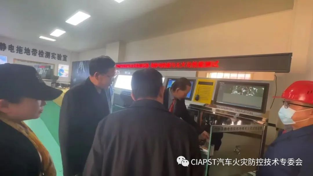 調(diào)研組首先了解企業(yè)的設(shè)立和發(fā)展等相關(guān)工作情況。隨后來到“大映谷實(shí)驗(yàn)室”,觀摩汽車導(dǎo)靜電橡膠拖地帶旋轉(zhuǎn)摩擦試驗(yàn)過程,對(duì)試驗(yàn)過程未產(chǎn)生火花的復(fù)合金屬材料給予肯定,該項(xiàng)技術(shù)突破行業(yè)技術(shù)瓶頸、解決行業(yè)技術(shù)難題,一定程度上促進(jìn)了產(chǎn)業(yè)的新升級(jí)。另外,參觀了機(jī)動(dòng)車排氣火花熄滅器火花熄滅性能試驗(yàn)機(jī)、道路運(yùn)輸危險(xiǎn)貨物車輛標(biāo)志燈發(fā)光質(zhì)量試驗(yàn)裝置。進(jìn)而觀摩考察大映谷汽車火災(zāi)防控裝備新工藝、新技術(shù)、新裝備。王明文介紹:新一輪科技革命和產(chǎn)業(yè)變革深入發(fā)展,物聯(lián)網(wǎng)、大數(shù)據(jù)、人工智能等高科技在消防領(lǐng)域深度集成應(yīng)用,大幅降低消防安全風(fēng)險(xiǎn),有效提升了消防安全監(jiān)測(cè)預(yù)警、監(jiān)管執(zhí)法、指揮決策、應(yīng)急救援等能力,為消防工作轉(zhuǎn)型升級(jí)聚力賦能。