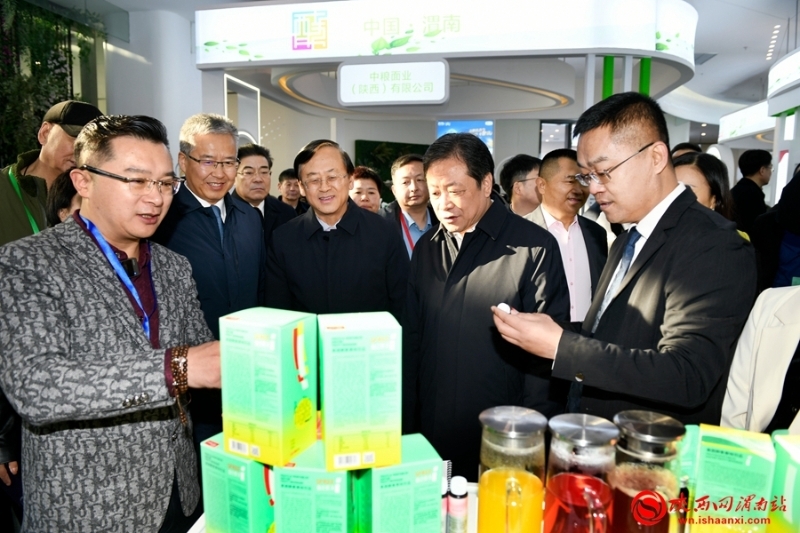陜西省人大常委會副主任、渭南市委書記樊維斌,渭南市人民政府市長陳曉勇,中國生物發(fā)酵產(chǎn)業(yè)協(xié)會理事長于學(xué)軍等與會領(lǐng)導(dǎo)嘉賓到姿美堂科技集團(tuán)展區(qū)參觀。