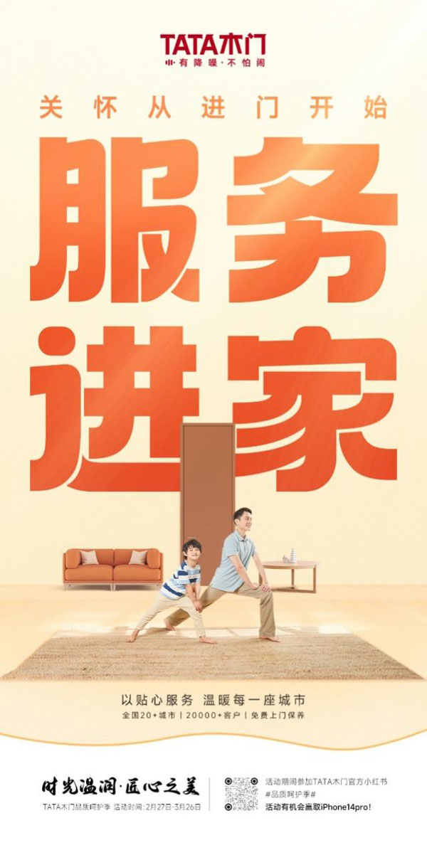 與此同時(shí),TATA木門延續(xù)了往年的服務(wù)月活動(dòng),特別為全國(guó)20多座城市,20000多位用戶提供免費(fèi)上門保養(yǎng)服務(wù),用實(shí)際行動(dòng)傳遞著品牌的溫度。除此之外,為回饋新老用戶,TATA木門推出木門放心購(gòu)活動(dòng),以超值的價(jià)格全新讓利于消費(fèi)者,打通全平臺(tái)銷售通道,讓消費(fèi)者能夠以最值的價(jià)格獲得最優(yōu)質(zhì)的品質(zhì)和服務(wù)。