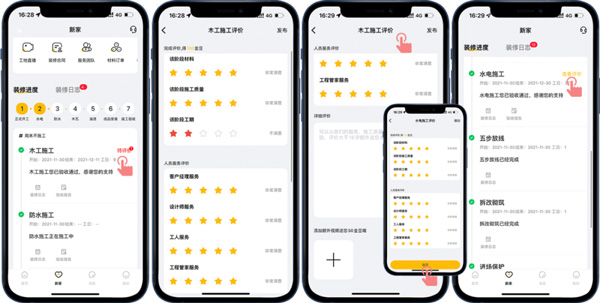 通過(guò)“新家-裝修進(jìn)度”和“新家-裝修日志”模式,直觀地了解到目前的裝修階段,工程隊(duì)每日的工作內(nèi)容,讓客戶在家就能了解施工進(jìn)度、感受工程品質(zhì)!