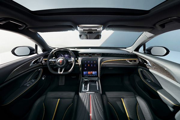 在內(nèi)飾設(shè)計方面,紅旗H6以“環(huán)懸科技”概念,采用流動輕盈的整體架構(gòu),為駕乘者帶來尊貴體驗。超大中控豎屏、“金盞黃+黑色”內(nèi)飾、“真皮+碳纖維”方向盤、運動座椅、全液晶儀表盤、精致簡潔的門板和飾條設(shè)計,在傳承家族“中軸式布局”的基礎(chǔ)上,呈現(xiàn)出兼具豪華尊享、智慧科技、激情動感的風(fēng)尚氣息。