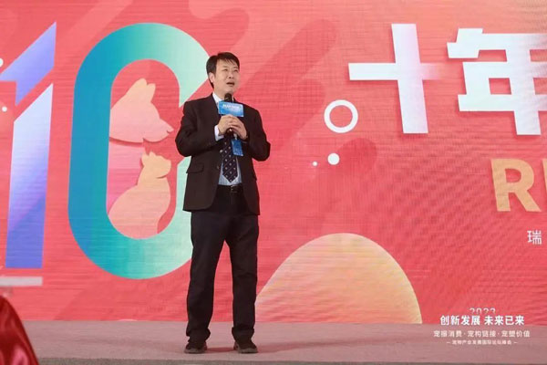 李守軍董事長(zhǎng)攜瑞派領(lǐng)導(dǎo)團(tuán)上臺(tái)致祝酒詞,回首崢嶸歲月欣慰神馳,展望錦繡前程壯懷激越,舉杯共慶瑞派十周年華誕。接續(xù)邁步揚(yáng)帆,任憑浪遏飛舟,為實(shí)現(xiàn)寵物產(chǎn)業(yè)的宏偉目標(biāo),保持戰(zhàn)略定力,堅(jiān)持守正創(chuàng)新!