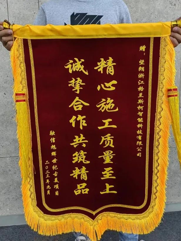 梧葉新黃柿葉紅,更兼烏桕與丹楓,在九月滿城桂花初香的時節(jié),堅朗格蘭斯柯新風收到了來自上海融信旭輝世紀古美項目部的錦旗,這是對格蘭斯柯新風在克服疫情影響下按時、保質完成超低能耗新風系統(tǒng)供貨及施工任務的充分肯定。
