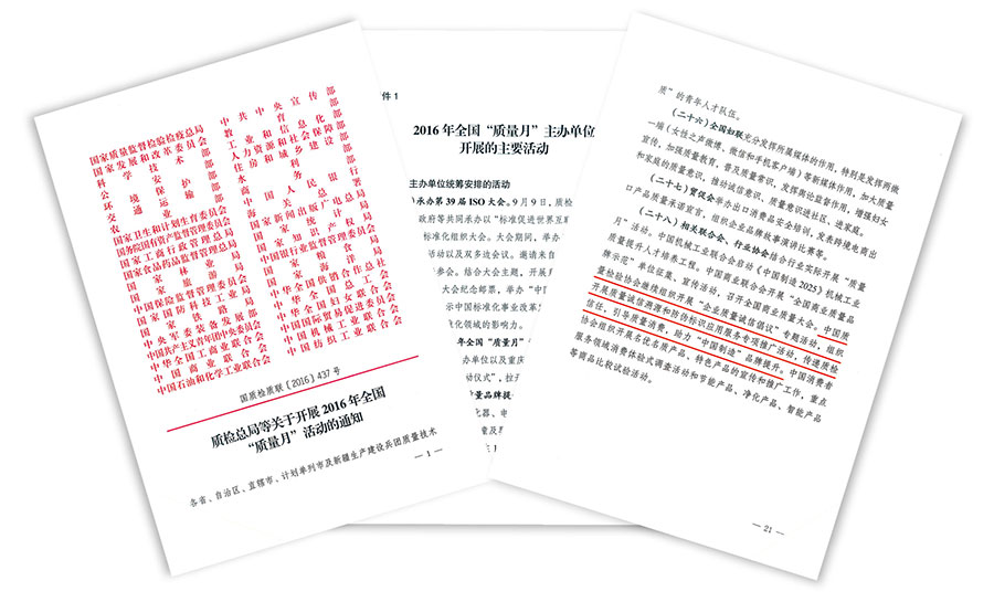 提高供給質(zhì)量是供給側結構性改革的主攻方向,全面提高產(chǎn)品和服務質(zhì)量是提升供給體系的中心任務。為了堅持以質(zhì)量第一為價值導向,下最大氣力抓全面提高質(zhì)量,推動我國經(jīng)濟發(fā)展進入質(zhì)量時代,國家質(zhì)檢總局、中共中央宣傳部、國家發(fā)改委、工業(yè)和信息化部、中央軍委裝備發(fā)展部、中華全國工商業(yè)聯(lián)合會等47個2017年全國“質(zhì)量月”活動主辦單位在《2017年全國“質(zhì)量月”活動主辦單位開展的主要活動》中部署安排中國質(zhì)量檢驗協(xié)會:繼續(xù)組織開展“企業(yè)質(zhì)量誠信倡議”專題活動,開展質(zhì)量誠信溯源和防偽標識應用服務專項推廣活動。同時,2017年全國“質(zhì)量月”活動還將中國質(zhì)量檢驗協(xié)會工作核心價值“傳遞質(zhì)檢信任 引導質(zhì)量消費”及2017年全國“質(zhì)量月”企業(yè)質(zhì)量誠信倡議專題活動的主題“弘揚工匠精神,堅持質(zhì)量第一”列為《2017年全國“質(zhì)量月”活動口號》。